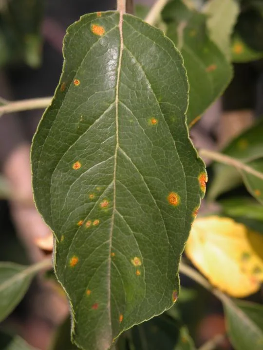A fungal disease affecting crabapple trees, cedar apple rust causes bright orange-yellow spots on leaves and fruit, leading to premature leaf drop and reduced fruit quality. It thrives in Middle Tennessee’s humid climate, especially near cedar trees, which serve as an alternate host for the fungus. Proper sanitation and fungicide treatments can help protect trees in areas like Columbia and Franklin.