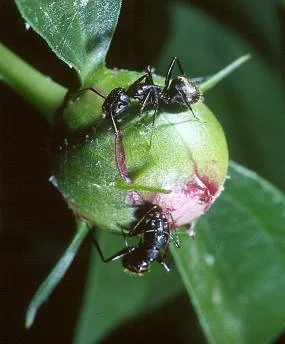 - Black carpenter ants taking sugars from Peony nectaries.